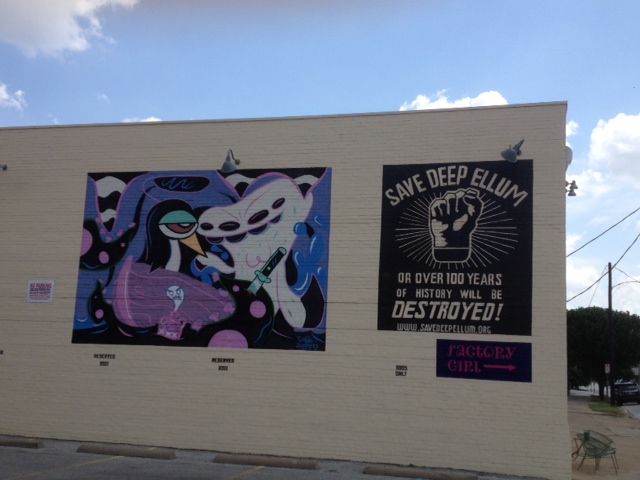 Second, the message, “Save Deep Ellum.” Long before I lived in Dallas or knew what “going out” meant, Deep Ellum was the place to go out in Dallas. This was the late 90s. The bars are often empty now, the metered parking spots free of cars, the sidewalks roamed mainly by invisible people, unless it is lunch hour.