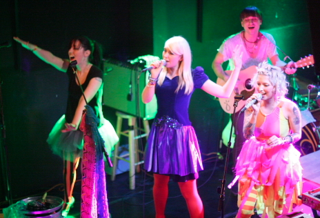 This leads us to the fourth most surprising aspect of the night. In Lawrence, there’s apparently a certain subsection of the populace that believes Tilly and the Wall to be Lennon/McCartney Part II. Seriously. There were probably only 40 or 50 people at this show. Honestly, maybe more like 30. I’ve never been good at counting crowds. But there were about 20 people right near the stage, dancing and fist-pumping and screaming and more or less acting like sugar-high hipster maniacs. They sang every word.