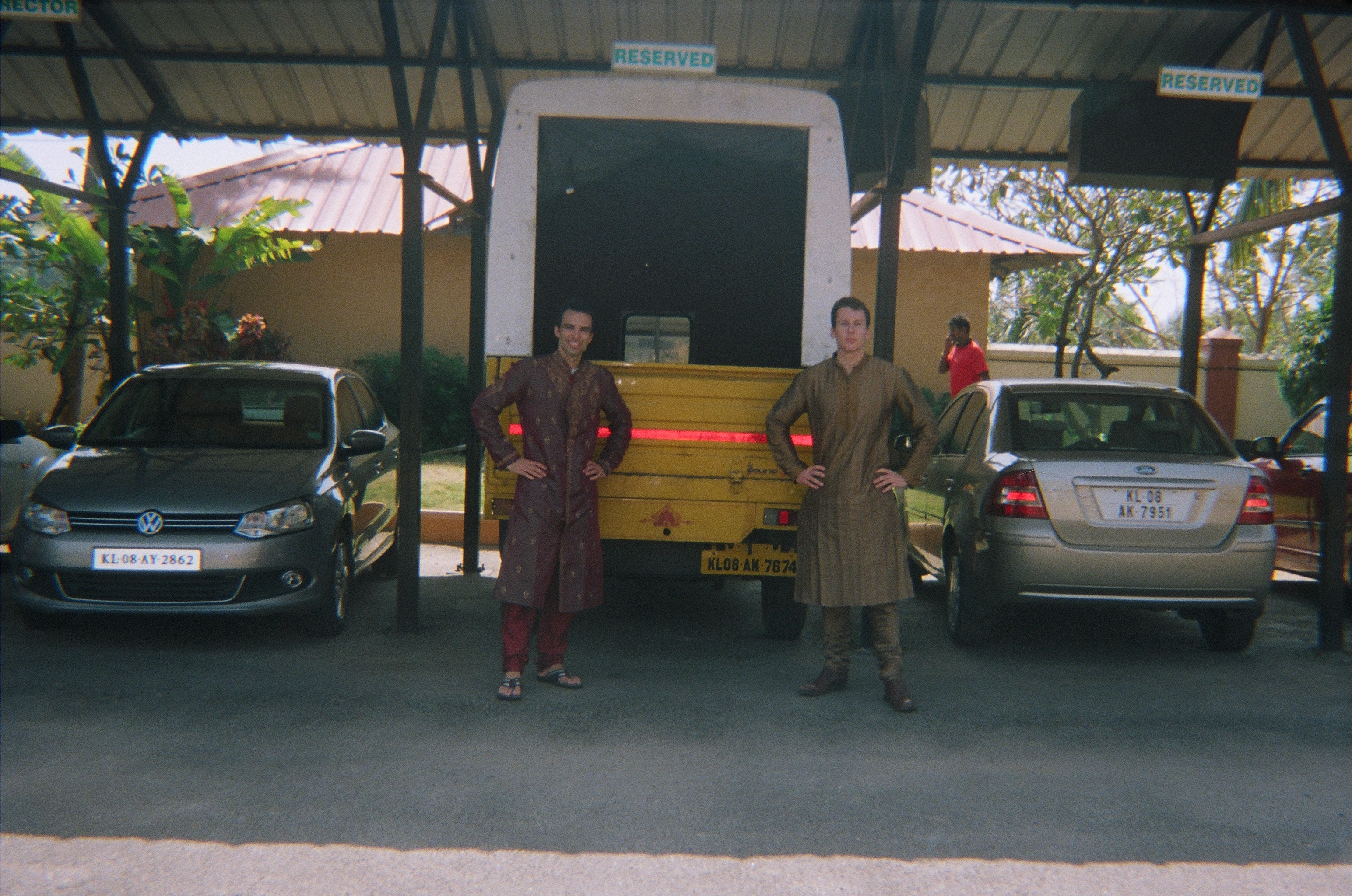 Our driver pulled into a parking lot. He stepped out, as did the driver of the car he had just rear-ended. Many people in India lack auto insurance (thanks, Obama) so our bus driver yelled at the driver of the car for a few minutes; the driver yelled back. Some rupees were exchanged. Some more profanities were exchanged. On to Thrissur!