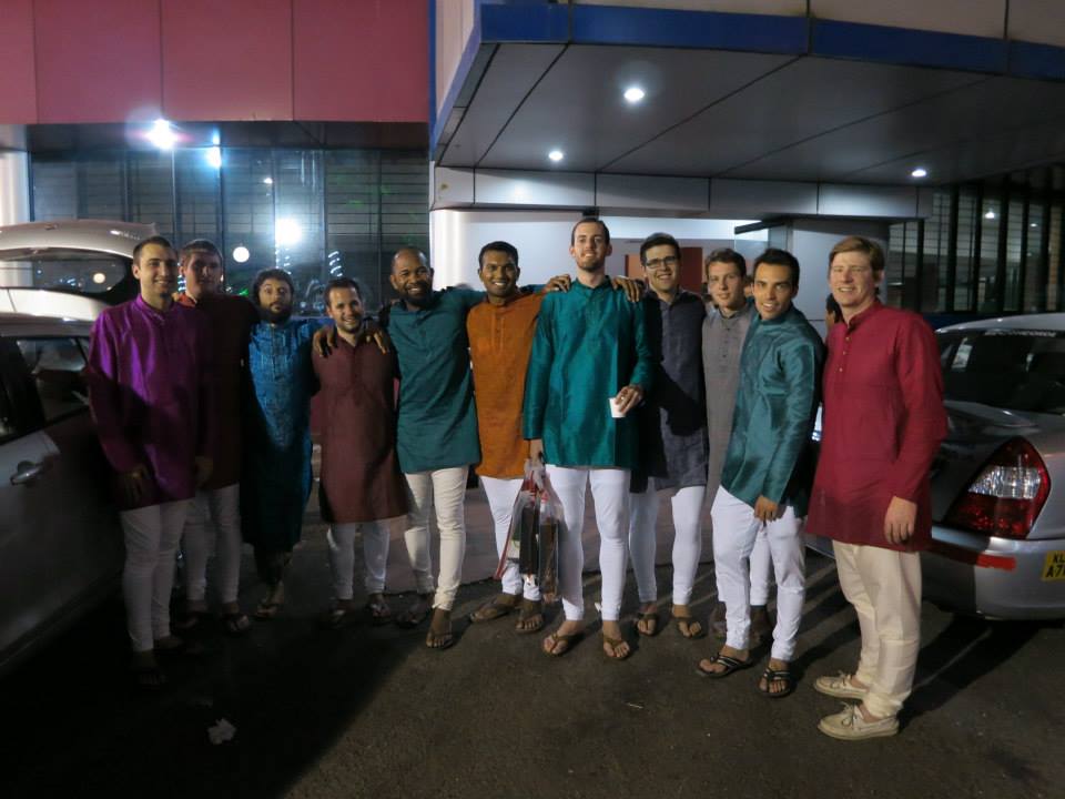 We, Tulasi and Chris’ American guests, wore Indian clothes to the wedding. For the women that meant saris. For the guys, that entailed so much more. We were to dress in what felt like clothes of the royals, with jewels, with the grace of Joffrey.